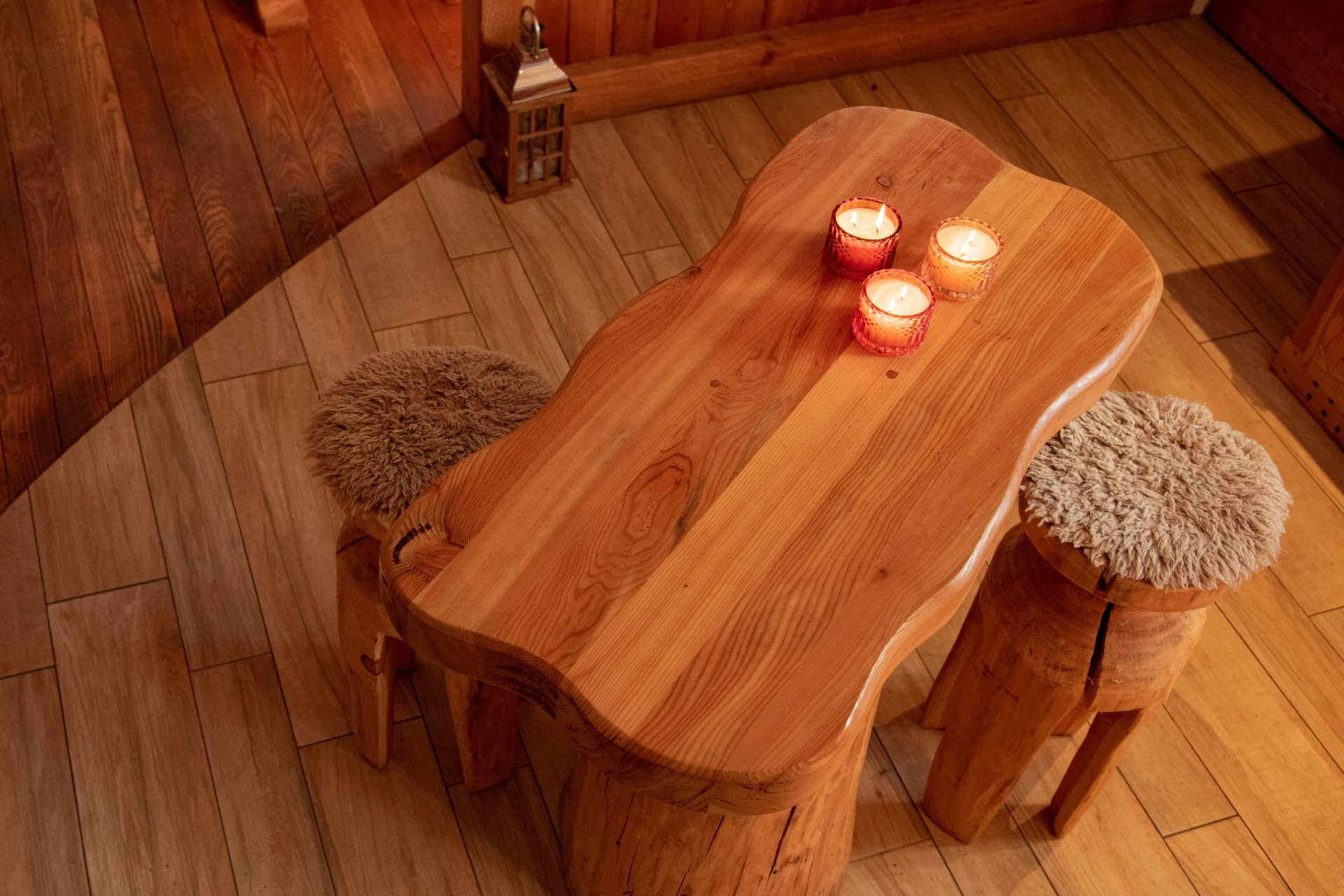 Kraken kan brukes som sitteplass, sidebord eller dekorativt element i innredningen. Den naturlige overflaten fremhever treets struktur og gir et varmt og organisk preg til rommet.
