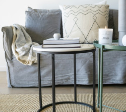 Som tommelfingerregel bør et sidebord være omtrent samme høyde som armlenet på sofaen eller stolen det står ved siden av. Det sikrer at bordet er praktisk å bruke uten å virke klumpete.